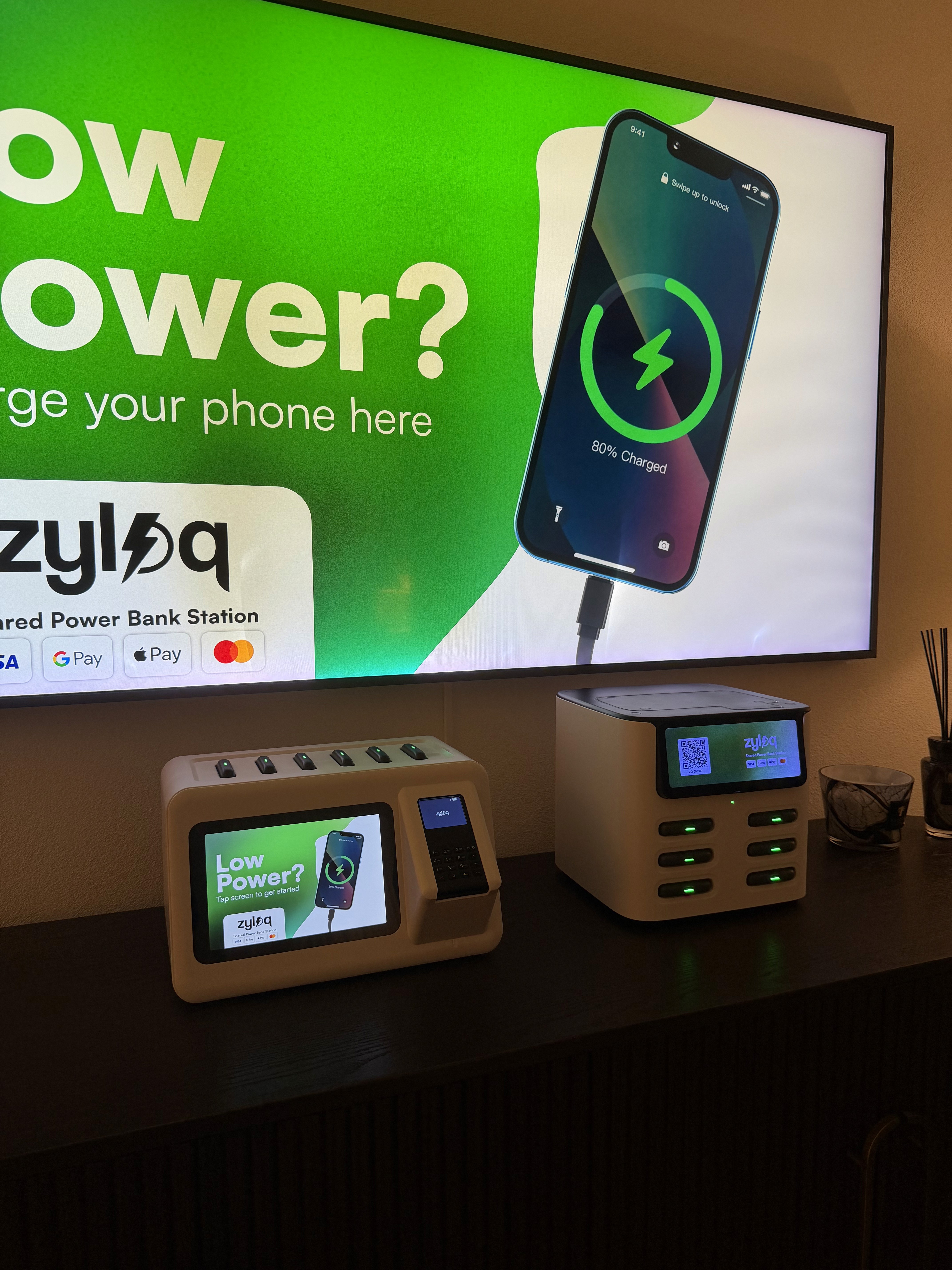 Gäste leihen sich eine Powerbank, laden ihr Handy und geben sie einfach zurück. Alles läuft automatisch, 24/7.